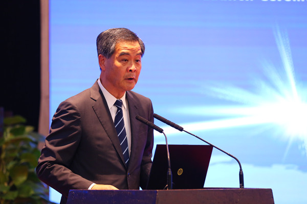 全國政協(xié)副主席、中國社會科學(xué)院“一帶一路”國際智庫專家委員會名譽主席梁振英致辭。本網(wǎng)記者 張哲 攝