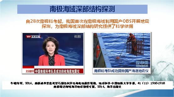 在南極地區(qū),我國(guó)有二處陸上地震臺(tái)站。在第28次南極科考時(shí)投放了海底地震儀,過(guò)了一年,在第29次南極科考船去那片海域回收時(shí),因那片海域結(jié)冰,沒(méi)法回收。根據(jù)設(shè)計(jì),海底地震儀最大留海時(shí)間為一年,大家都擔(dān)心失掉這兩臺(tái)儀器了??上驳氖牵诌^(guò)了一年那片海域已經(jīng)沒(méi)有冰了,在回收時(shí),海底地震儀竟然浮到海面,這是在海底記錄時(shí)間最長(zhǎng)的一次試驗(yàn)。也為南極海域深部結(jié)構(gòu)研究提供了科學(xué)依據(jù)。