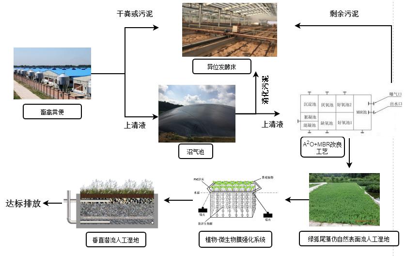 而針對(duì)我國規(guī)?;B(yǎng)殖場(chǎng)來說,近些年來大多采用固液分離—厭氧發(fā)酵—好氧曝氣傳統(tǒng)三段式工業(yè)處理模式處理養(yǎng)殖廢水,即理、化并用技術(shù)。該處理模式具有占地小、季節(jié)適應(yīng)性強(qiáng)以及可產(chǎn)出部分能源氣體(沼氣)等優(yōu)點(diǎn)。但同時(shí)也存在投入、運(yùn)行成本高,有機(jī)物和氮的去除不徹底,除磷工藝缺乏等缺點(diǎn)。隨著《畜禽養(yǎng)殖業(yè)污染物排放標(biāo)準(zhǔn)》(征求意見稿)的逐步落實(shí),現(xiàn)行的畜禽養(yǎng)殖廢水處理工藝大多已無法滿足新標(biāo)準(zhǔn)的排放要求。