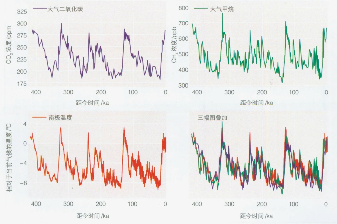 圖3  根據(jù)冰芯記錄得出的氣候變化數(shù)據(jù)(時(shí)間尺度為千年)
